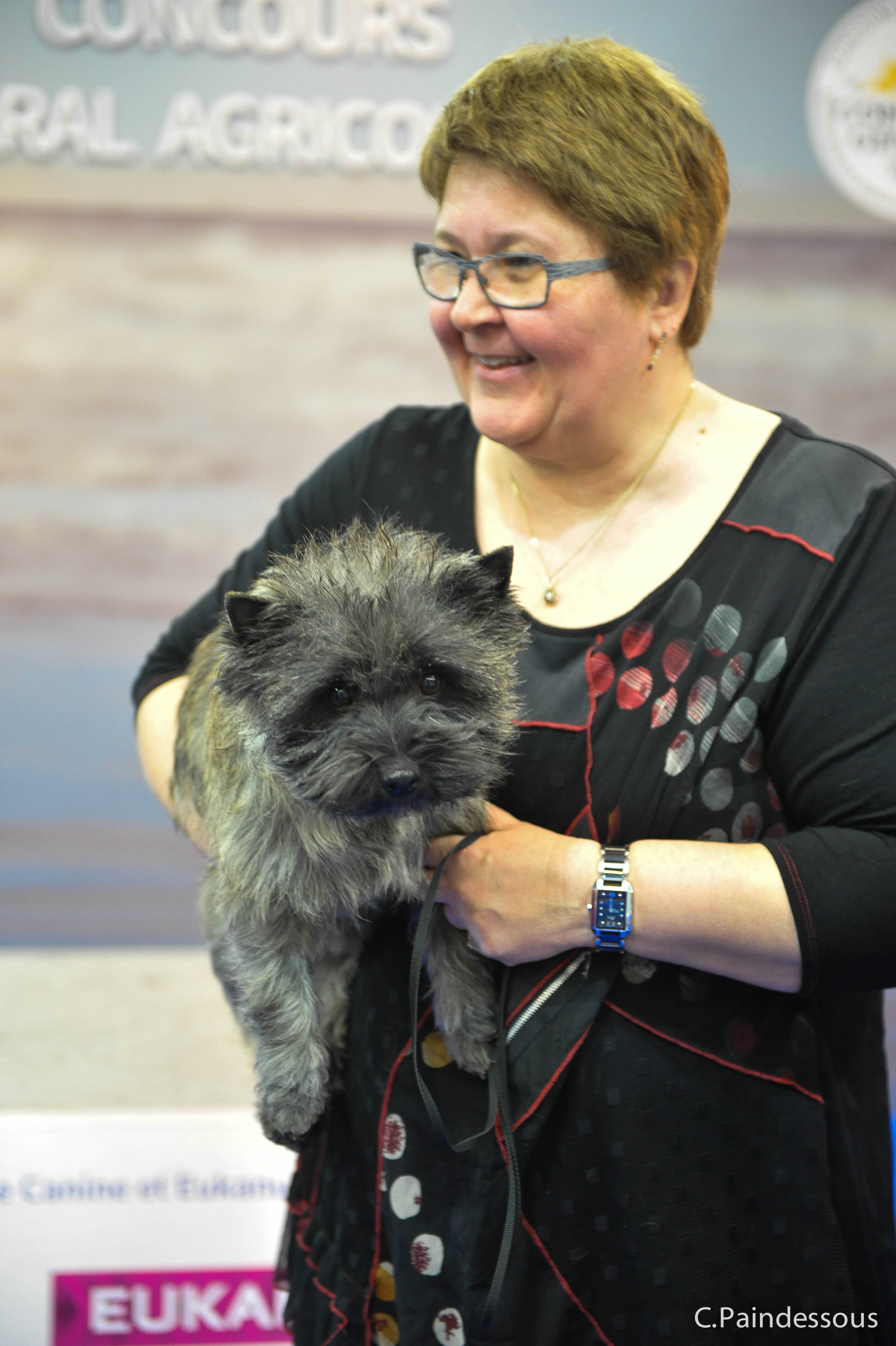 Héra a représenté le Cairn Terrier en classe travail au salon de l’agriculture. Pour être sélectionné, il faut avoir été jugé meilleure femelle en classe travail à la dernière Nationale d’Elevage.